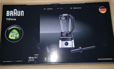 - Braun’s unique triangular jug design with TriAction technology; its superior performance and enhanced shape guarantees faster and finer results* * Compared to the Braun JB720