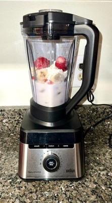 [This review was collected as part of a promotion.] I recently got the Braun Triforce Power Blender and I'm really impressed! It's powerful enough to crush ice and blend smoothies super smoothly. I love the sleek design and it's easy to clean too. Definitely recommend it! I love the number of speeds I use it every morning to make my protein shakes