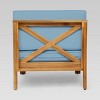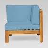 Featuring cross-back acacia wood frames and weather-resistant outdoor cushioning, this Christopher Knight Home Brava 3pc Acacia Modular Loveseat and Table Set will add a luxe, resort-like flair to any outdoor living area it finds itself a part of. Two single-armed components come included, one for the left side and one for the right, forming a seating arrangement comparable to a conventional loveseat when joined at their unarmed ends; they share a stylish and slatted square coffee table, also composed of 100% acacia. The set is completely configurable, able to round out any outdoor living area, whether together, apart, or as an accompaniment to a larger ensemble of sectional outdoor furniture. For the patio, deck, porch, or yard of modest proportion.