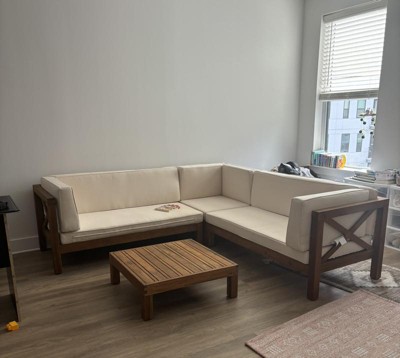 - Inclueds One (1) Right-Arm Bench, One (1) Left-Arm Bench, One (1) Corner Piece, One (1) Coffee Table