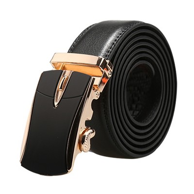 This ratchet belt is made of genuine leather, and features a zinc alloy buckle. The belt width is 1.3". This belt is the perfect addition for your wardrobe. Micro-adjustable ratchet closure delivers precise comfort. Durable stitching ensures longevity. Versatile for dress or casual wear, it fits most waists with ease.