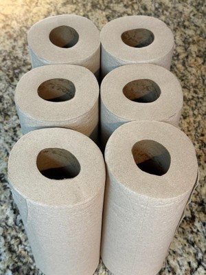 A: Bravo paper towels are unbleached, free of chemicals, and made from recycled materials. They are not made to be recycled or composted.