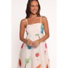 Make an entrance in the Brea Maxi Dress! This stunning maxi-length design features delicate spaghetti straps, a square neckline, and a shirred back detail for a flattering fit. With its bold Tutti Fruitti print, it's the perfect mix of chic and effortless style your go-to for any occasion.