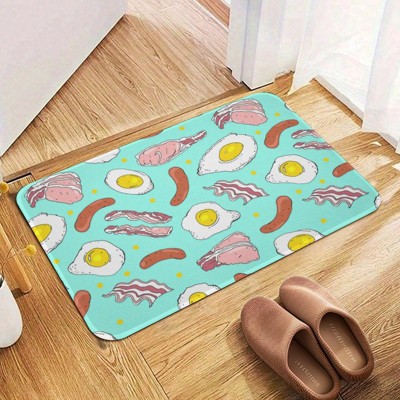 Breakfast Bacon Eggs Sausages Food Bathroom Rugs Winter Bath Mat Absorbent Non Slip Bathroom Mat Christmas Soft Floor Carpet 16x20 Inches