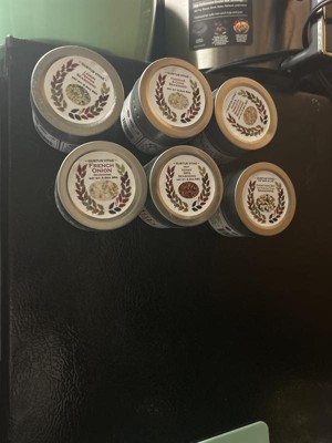 - French Onion Seasoning: Sea Salt, Onion, Sugar, Dill Tips, Chives, Garlic, Basil, Chervil, Tarragon, White Pepper, Parsley.