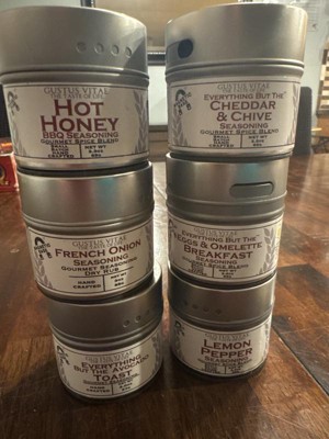 - Everything But The Avocado Toast Seasoning: Sea Salt, Sesame Seeds, Basil Leaves, Garlic, Onion, Parsley Flakes, Celery Seed, Paprika, Oregano, Lemon Peel Powder, Thyme, Dill Tips, Red Pepper, Chives, Basil Leaves, Chervil, Tarragon, White Pepper.