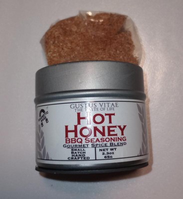 - Hot Honey BBQ Seasoning: Sea Salt Paprika, Garlic, Onion, Oregano, Cane Sugar, Honey, Thyme, Black Pepper, Bay Leaves, Ground Celery Seed, Red Cayenne, Chili Pepper, Chipotle Pepper, Red Pepper, Raspberry.