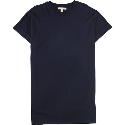 Embrace effortless style with this casual cotton mini dress, featuring a solid color design that softens beautifully after the first wash. The crew neck and short sleeves with dropped shoulders create a relaxed fit, while side pockets add a practical touch.