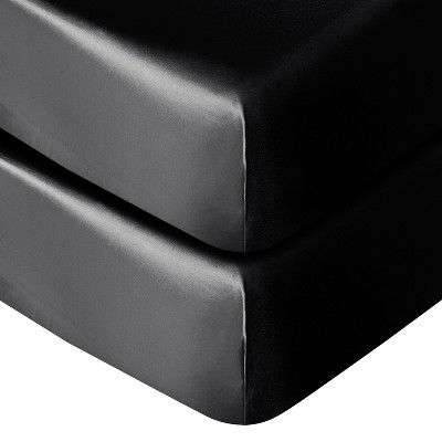 BreathableBaby Cotton Percale Fitted Sheet, For 52" x 28" Crib & Toddler Bed Mattress, Black (2-Pack)