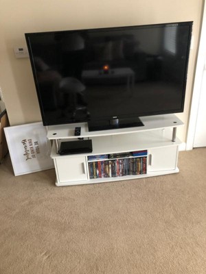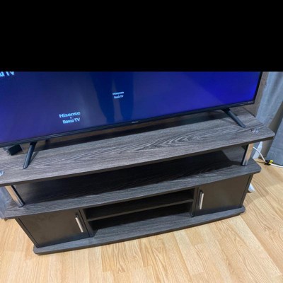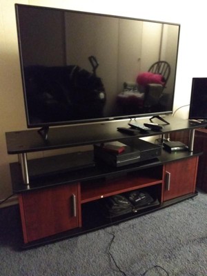 This TV stand was easy to put together. Great instructions. This TV stand can hold my 55 inch television.