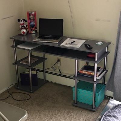 Looking for a convenient space to work with lots of storage space? The Designs2Go No Tools Student Desk with Shelves by Breighton Home is the perfect solution! Great for an office or dorm, this modern desk features plenty of storage space with a unique assembly that requires no tools. The thick particleboard shelving is supported by powder-coated stainless-steel legs that will not rust while plastic caps with rubber soles cover the bottom to help protect your floors. This desk is not only for a student but anyone wanting to add simplicity to their workload. Add coordinating pieces from the Designs2Go Collection by Breighton Home, each sold separately.