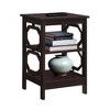Bring home a pop of pattern with the Omega End Table with Shelves by Breighton Home. Available in multiple finishes and great for smaller spaces, this contemporary end table with a subtle geometric detail is sure to make a statement in any room in your home. This simple yet eye-catching design showcases clean lines and beautiful octagon side cut-outs. Three tiers of spacious shelving offer plenty of room for home decorations and entertainment essentials. Crafted for long-term use, this sleek table is engineered from manufactured wood and finished with smooth non-lead-based paint. Coordinate with additional pieces from the beautiful Omega Collection by Breighton Home, each sold separately.