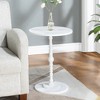 The Classic Accents Sanibel Beach Spindle Table by Breighton Home effortlessly infuses a sense of timeless sophistication into any room of your home. Its sleek profile and exquisitely sculpted turned spindle base make it a perfect fit for both traditional and modern interior designs. The smooth circular tabletop offers ample room for highlighting your cherished decor, enjoying a good book, or savoring your morning coffee. Built out of solid and manufactured wood, with a non-lead-based paint finish, this round unique piece is made to stand the test of time. With a variety of color options to choose from, this table is hassle-free, easy to maintain, and quick to assemble requiring no tools. Whether gracing your living room, bedroom, or hallway, this table seamlessly melds with any space, elevating your decor. Elevate your space effortlessly with the Classic Accents Sanibel Beach Spindle Table by Breighton Home today.