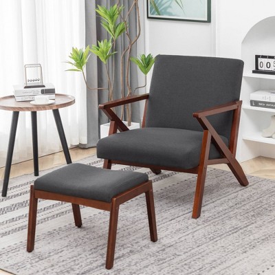 Breighton Home Take a Seat Andy Mid Century Modern Accent Lounge Armchair in Sandy Beige Fabric/Espresso