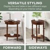 The Classic Accents Brandi Oval End Table with Shelf by Breighton Home offers a blend of versatility and timeless elegance. Its unique design allows for multiple display options, serving as a charming chairside table or effortlessly transitioning to a wider accent table when faced forward. The oval-shaped tabletop, coupled with a convenient bottom shelf, provides ample room for showcasing decor, storing essentials, or hosting beverages. Crafted with attention to detail, the solid wood legs feature a sculpted turned style, adding a touch of sophistication to its classic silhouette. Finished in veneer, this side table exudes warmth and richness, making it a standout piece in any room. No tools are needed to assembly this classic accent table making it a breeze to put together right after delivery. The Classic Accents Brandi Oval End Table with Shelf combines versatility with style and can be used as a nightstand or bedside table as well.