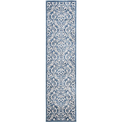 Elevate your interior with this Transitional Ivory/Blue Runner Area Rug, where beauty meets quality and sustainability.