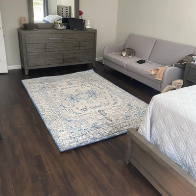 Absolutely love this rug! It has a beautiful pattern, thin enough to easily vacuum, and adds a great texture to our space. Also, super stain friendly. We’ve had a couple accidents already, and the stains came out easily without causing any discoloration.