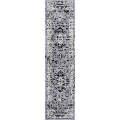 The transitional style of this rug brings a versatile charm that marries well with both contemporary and classic interiors. Its 3/8" pile height offers a sumptuous underfoot feel without compromising the ease of maintenance. The intricate pattern, depicted in a harmonious grey and black palette, showcases a design that will captivate and complement your living space.