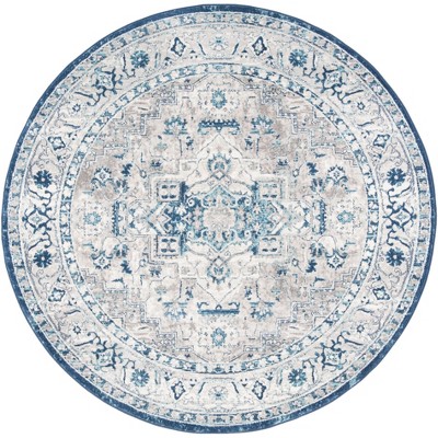 Brentwood BNT865 Power Loomed Indoor Area Rug - Ivory/Navy - 5' Round - Safavieh