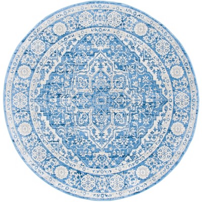 Brentwood BNT865 Power Loomed Indoor Area Rug - Ivory/Navy - 8' Round - Safavieh