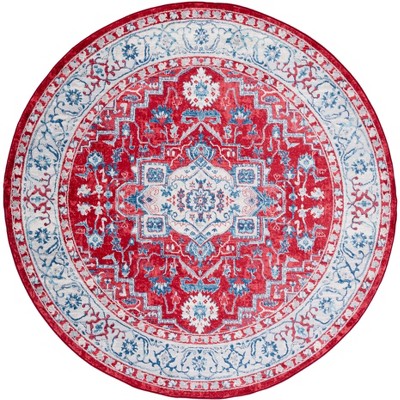 Brentwood BNT867 Power Loomed Indoor Area Rug - Red/Ivory - 6'7" Round - Safavieh