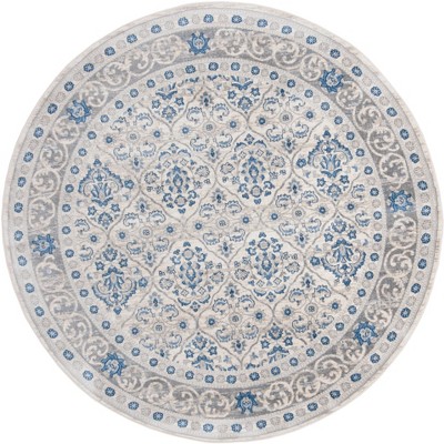 Bring a touch of elegance to your space with this exquisite round rug. Measuring 3 feet in diameter and 3/8 inch in height, this piece is designed to fit perfectly in cozy spaces. The light grey and blue tones create a serene ambiance, while the traditional oriental pattern adds a classic touch. Crafted in Turkey using a power loomed technique, this rug combines 60 percent polypropylene with 40 percent jute, providing a soft yet durable foundation for any room. The subtle interplay of colors and traditional style makes it a versatile addition to both modern and classic interiors. Ideal for enhancing living rooms, bedrooms, or entryways, this rug is a sophisticated choice for those seeking timeless style.