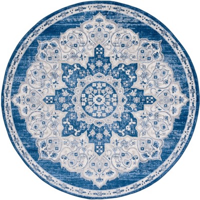 Brentwood BNT870 Power Loomed Indoor Area Rug - Ivory/Blue - 6'7" Round - Safavieh