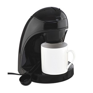 Coffee that's just for you! Use the Brentwood Appliances Single-Serve Coffee Maker with Mug to make the ideal cup of coffee using your favorite coffee grounds. Simply place your grounds, add water, and hit the power button! The reusable filter basket holds up to 4 tbsp., double the strength of a normal cup of coffee. This Black unit is BPA-free and easy to clean._