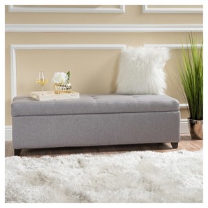 Brentwood Storage Ottoman - Gray - Christopher Knight Home: Tufted Lid, Pressure Hinges, Polyester