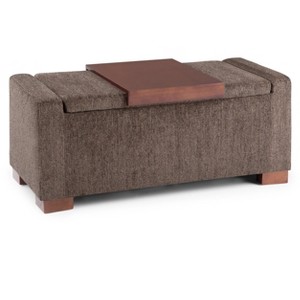 Hand constructed using solid wood, engineered wood and high density foamUpholstered with a durable Deep Umber Brown Chenille Look FabricFeatures a lift top with tray perfect for using your lap top, tablet or diningMulti-functional ottoman can be used in bedroom, living room, family room, hallway as an entryway bench, foot stool, accent furniture or provide additional sittingContemporary design includes large interior storage space with child safety hingeSimple assembly; just attach legsDimensions: 42.4inW x 20.1inD x 17.9inHEfforts are made to reproduce accurate colors, variations in color may occur due to computer monitor and photography