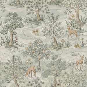 - Light wintergreen painterly woodland toile peel and stick wallpaper from the Chris Loves Julia x WallPops collection of peel and stick NuWallpaper