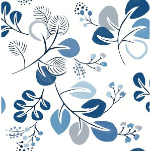 Charm up your walls with this delightful Scandinavian peel and stick NuWallpaper print. Featuring branches of painterly blue leaves atop a crisp white backdrop, this print is sure to bring whimsy to your space with ease. Roux Blue Peel and Stick Wallpaper comes on one roll that measures 20.5 inches wide by 18 feet long.
