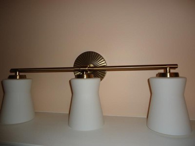 [This review was collected as part of a promotion.] Kichler’s Brianne 24.5" 3 Light Vanity fixture is a beautiful fixture that can compliment a variety of decorative styles. I selected this for a bathroom in an old house because I thought the sunburst and the brass finish would look more antique and suit the house’s architecture better. However, once this fixture arrived it is elegant and stylized and really could go in a variety of decorative styles. I think the “cinched” glass bulb covers are what really make this a versatile fixture. The cinched design and the satin etched glass really give the fixture a bright, bold and updated look. The brushed natural brass finish is uniform and blemish free and the satin etched glass is a really nicer than any I have seen. As can be expected with Kichler fixtures this is well made and durable and I trust will be a lasting fixture. I am comfortable installing light fixtures. Everything needed except the bulbs are included in the box. The fixture is lightweight and easy to install so I was able to do this quickly and without help. The instructions are thorough and easy to follow. I am very happy with the fixture it blends in well with the other fixtures and finishes in the room. The light quality is good in brightness and in lighting the entire room well. I would also point out this is a three light fixture but it is not overly large, at 24.5” it centers well and looks perfect in my medium sized bathroom. Overall, this looks great. I have received lots of compliments and am really happy I selected this fixture.