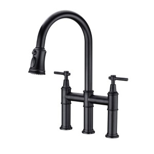 - Classic Bridge Design with a Twist: While maintaining the classic bridge faucet silhouette, the Spot Black finish gives this traditional design a modern edge, making it suitable for both traditional and modern kitchens.
