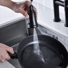 - Sleek Black Finish: This bridge kitchen faucet boasts a sophisticated Spot Black finish that brings a modern and bold touch to your kitchen decor, perfectly complementing contemporary design schemes.