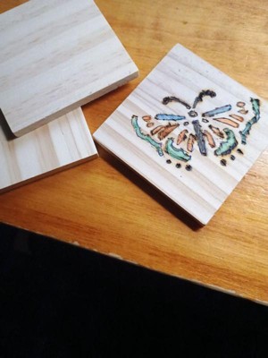 [This review was collected as part of a promotion.] I bought a wood burning tool and received it today. This is the first time I ever did this. I want to make coasters out of them. I did one and I'm not very good at it. I will keep trying. I bought felt to glue on the bottom. The wood is a little hard to work with. They are worth working on. I even thought of getting some kind of stickers to put on them. I will work with them to see how they come out .