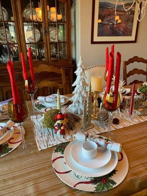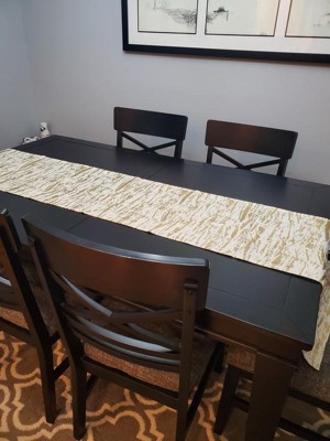 [This review was collected as part of a promotion.] Love this gorgeous table runner! The gold foil embossed runner is the perfect size for my table & will be a great addition to all my holiday decor. Quality made- I definitely recommend this runner! (and my husband calls me the queen of runners so I know a good one when I see one!)