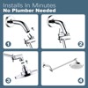 EASY TOOL-FREE INSTALLATION - Installs in minutes without the need for tools or a plumber. The locking screw design keeps the nut firmly in place, preventing any side-to-side swaying. Universal 1/2" NPT threads fit standard shower arms and shower heads, and free Teflon tape ensures a leak-free seal