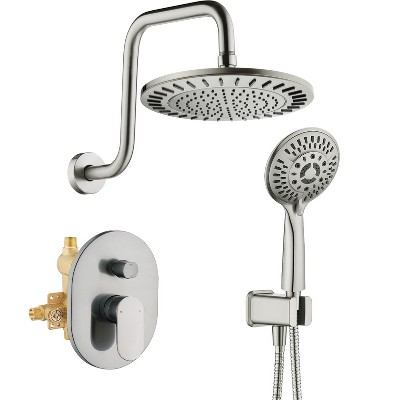 - Rain shower heads combo is packaged in a strong box, perfect as a gift to friends. Package includes: 1*Rain shower head, 1*Handheld shower, 1*60 Inches stainless steel shower hose, 1*Teflon thread seal tape. Please note washers are pre-assembled, no shower arm included in the packaging.