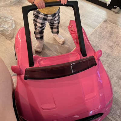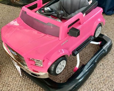 Rev your engine and get ready to put the pedal to the playtime metal with Ford and Bright Starts! When you need fun in high gear, this baby walker gives you just the right *vroom* for the job. The pink 4 in 1 Mustang walker is made to support multiple stages of play, and two can play at once! In normal walker mode, beginning walkers can steer around the house with extra stability and support. More experienced walkers can use push-behind mode to hit the road inside your home. The authentic Mustang sounds, lights, gear shifter, steering wheel and the look of this sporty walker will drive your babys imagination ("Wow! I'm just like mom and dad!"). The removable steering wheel activity center can be used for floor play or on-the-go.