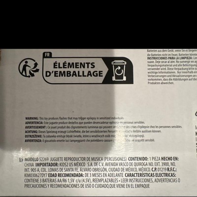- 3 colorful drums activate songs, sounds and lights
