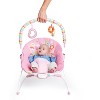 This seat is only fit for the prettiest princess your baby! Enter a magical kingdom with this fantasy themed Bright Starts baby seat. When shes done flying with fairies and prancing with unicorns, the bouncy seat will give her the royal treatment with soothing motions and vibrations. Your baby will love to reach for the heart-shaped rattle or bright fancy flower bead chaser. The soft pink and plush padded seat will keep her safe and secure with its 3 point harness and nonslip feet. With your newborn unicorn in her favorite baby bouncer, you can take a seat too with baby in view.