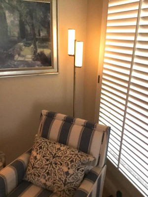 This floor lamp is perfect. It’s the perfect slim size to tuck into a corner. I love the way it looks. Never seen another like it. The best part is the “touch tap” function for the three different levels of brightness. Can be either plenty bright or nicely dim.