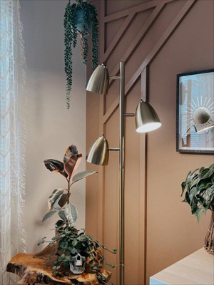 Brightech's Jacob LED Reading Floor Lamp is a stylish, practical, and affordable multipurpose lamp that can meet any need. This corner lamp features 3 adjustable LED lights in domed heads, anchored by a sturdy base. It's perfect for bedrooms, offices, and living rooms with urban, art deco, contemporary, classic, and traditional decor styles. Turn on one or two bulbs for reading or watching TV before bed, or all three for bright light for hobbies. Choose from black, brass, or silver and enjoy the convenience of compatible smart home devices like Alexa and Siri. The included Brightech Lightpro LED bulbs shine with just 9.5 watts and have a natural 3000 Kelvin color temperature and 800 Lumens EACH. Plus, they can last up to 20 years (with 3 hours/day use) before needing to be replaced. Assembly is easy and requires no extra tools - just follow the manual, plug it in, and you're ready to go! Get the perfect lamp for your living room at an affordable price today.