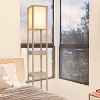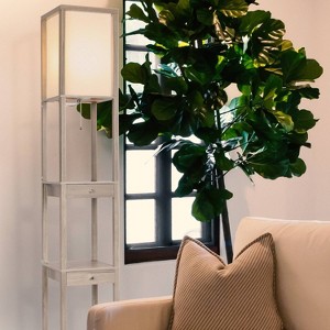 Transform your living space with Brightech's Maxwell Drawer Edition tall standing lamp! This modern shelf floor lamp with drawer is perfect for contemporary spaces, providing a practical solution to harsh brightness with its diffuse, shaded light. The off-white shade softens the brightness of the lamp and opens at the top filtering the light into a diffused glow, creating a cozy and comfortable atmosphere. The open-frame structure features four tiers of display shelves and three small drawers, perfect for discreet storage and displaying books, art, and plants. The included Brightech Lightpro LED light bulb shines with just 9.5 watts and has a natural 3000 Kelvin color temperature and 800 Lumens, lasting up to 20 years (if used for 3 hours/day). The lamp is also compatible with smart home devices such as Alexa and Siri. Plug the floor lamp into a smart plug or smart outlet (purchase separately), or swap out the included bulb with a smart bulb, and enjoy your new lighting! With its rustic wood design, simple and elegant appearance, classic Asian style, and compatibility with most living room decors, this Brightech modern floor lamp with shelves is sure to be a great addition to your home. Plus, we proudly stand behind all of our sales and offer an industry-leading 3-year warranty on our sales.