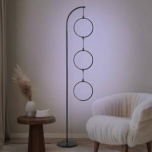 Brightech’s Nova floor lamp is a unique arc lamp with a modern and sophisticated touch. Perfect as a centerpiece, this living room lamp adds an exciting twist to many décor styles, such as industrial, minimalist, mid-century modern, and urban. This standing lamp is the perfect way to add flare to your living room, bedroom, or office. Built with a curved black stem and three hanging light rings, this floor lamp for bedrooms has a distinct look that you’d expect from much more expensive lighting options. The LED floor lamp features RGB Color Changing Hues for convenience and includes an integrated LED light for excellent illumination. The bulbs in the modern floor lamp can last 20 years (if used for 3 hours/day) before they need to be replaced. Plus, it takes less electricity than other bulbs, so your utility bills will drop compared to incandescent and halogen bulbs. Try placing the modern floor lamp over the sofa for reading or adding it to the middle of the room to show off its elegance. There is no hassle with assembly, and customers appreciate how sturdy and easy this lamp is to set up.
