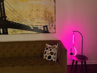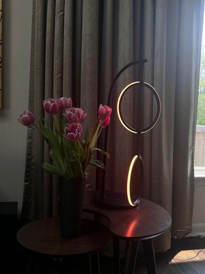 Introducing the Nova RGB Table Lamp by Brightech, the epitome of elegance and versatility. Tailored to complement various décors, from industrial and mid-century to modern and minimalist, its unique two-ring fixture and matte black finish elevate any room. Use it as a captivating centerpiece or for subtle ambient lighting. This modern table lamp is as functional as it is stylish, boasting 3 built-in color options. Dive into a kaleidoscope of hues with the RGB gradient mode or switch to a cool white for a classic touch, all at a button's tap. Designed for safety and stability, its heavy base resists tipping, making it perfect for living rooms, bedrooms, offices, or even children’s rooms. The efficient 9-watt RGBCW LED lights promise longevity and savings on energy bills. And with Brightech's 3-year warranty, you're assured of quality and reliability. Experience the future of home lighting!