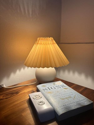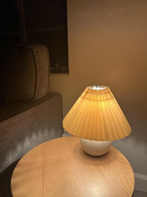 I'm obsessed with the ceramic base, it's a great neutral color and feel to it. The shade creates a really nice light cast on the wall and makes my bedroom feel super cozy. I also like the size, since my bedside table is small so it doesn't take up much room.