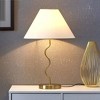 Illuminate your space with the Squiggle LED Table Lamp from Brightech, a beacon of inventive design and modern aesthetics. The lamp's striking metal base, a sinuous matte brass column, cradles an ivory empire shade, a statement of both form and function. Effortlessly providing a 2700K warm white light that's as suitable for the vibrant activity of a living room as it is for the peaceful solitude of a bedroom, this lamp is versatility personified. A stepless, in-line dimmer switch on the cord presents seamless brightness control, crafting the ideal atmosphere for any occasion. Beyond its role as a light source, the Squiggle Lamp is a modern and eclectic visual spectacle, with its 4.5W LED bulb casting 500 lumens of efficient, inviting light. Wrapped in a distinguished brass finish, this lamp embodies Brightech's fusion of stylish, forward-thinking design with the assurance of lasting functionality, all backed by a reassuring 3-year warranty.