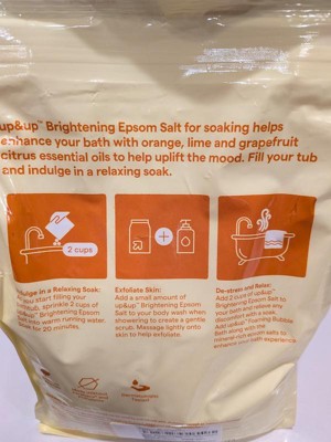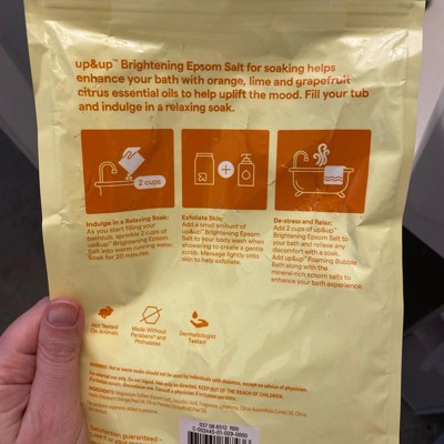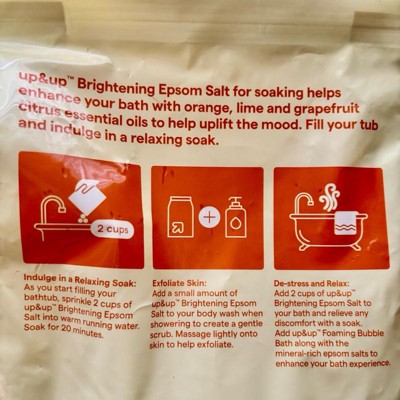 Rejuvenate your body and mind as you soak in the tub with this Brightening Epsom Salt with Sparkling Citrus Scent from up&up™. This epsom salt soaking aid soothes your body and contains Vitamin C to help promote glowing, radiant skin. Dermatologist tested, it contains no parabens or phthalates and features a refreshing sparkling citrus scent you'll love.